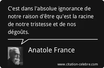 C'est dans l'absolue ignorance de notre raison d'être qu'est la racine de notre tristesse et de nos dégoûts.