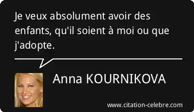 Citation Anna KOURNIKOVA avoir : Je veux absolument avoir des enfants, qu'il soient à moi...