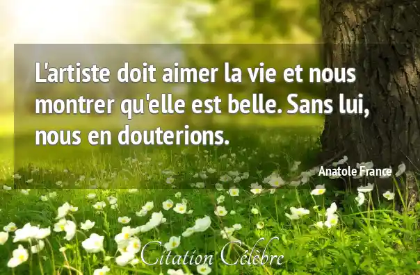 L'artiste doit aimer la vie et nous montrer qu'elle est belle. Sans lui, nous en douterions.