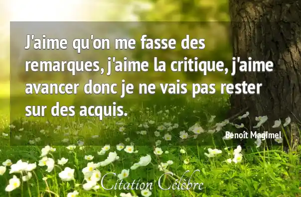 J'aime qu'on me fasse des remarques, j'aime la critique, j'aime avancer donc je ne vais pas rester sur des acquis.