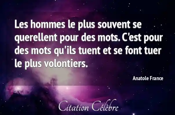 Les hommes le plus souvent se querellent pour des mots. C'est pour des mots qu'ils tuent et se font tuer le plus volontiers.