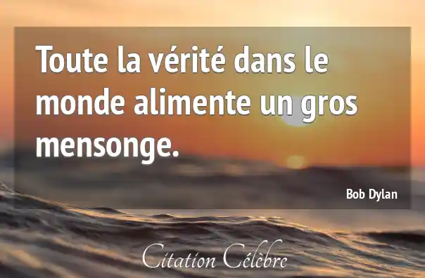 Citation Bob Dylan verite : Toute la vérité dans le monde alimente un gros mensonge....