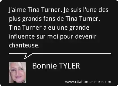J'aime Tina Turner. Je suis l'une des plus grands fans de Tina Turner. Tina Turner a eu une grande influence sur moi pour devenir chanteuse.