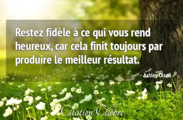Restez fidèle à ce qui vous rend heureux, car cela finit toujours par produire le meilleur résultat.