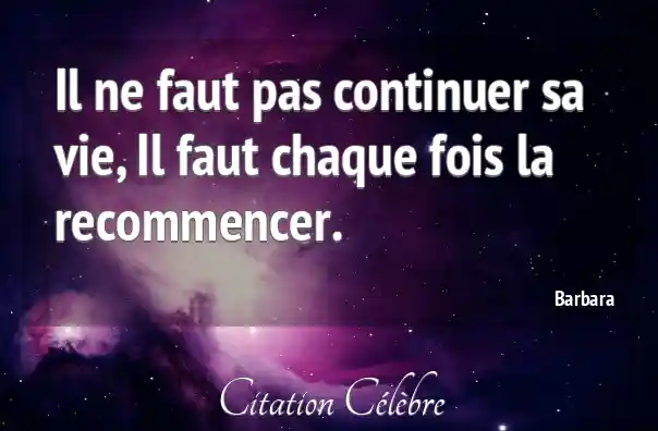 Citation Barbara vie : Il ne faut pas continuer sa vie, Il faut chaque...