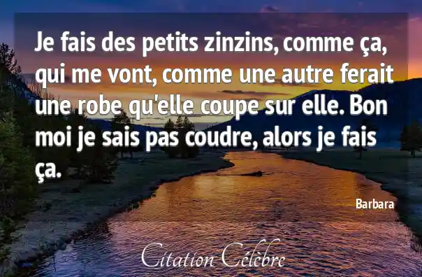 Je fais des petits zinzins, comme ça, qui me vont, comme une autre ferait une robe qu'elle coupe sur elle. Bon moi je sais pas coudre, alors je fais ça.