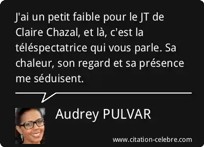 J'ai un petit faible pour le JT de Claire Chazal, et là, c'est la téléspectatrice qui vous parle. Sa chaleur, son regard et sa présence me séduisent.