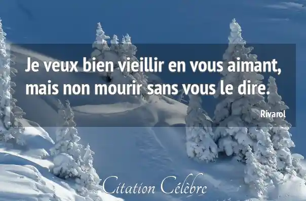Je veux bien vieillir en vous aimant, mais non mourir sans vous le dire.