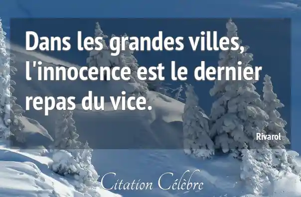 Dans les grandes villes, l'innocence est le dernier repas du vice.