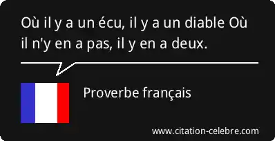Où il y a un écu, il y a un diable Où il n'y en a pas, il y en a deux.