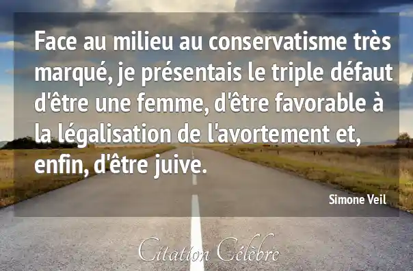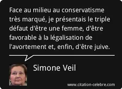 Face au milieu au conservatisme très marqué, je présentais le triple défaut d'être une femme, d'être favorable à la légalisation de l'avortement et, enfin, d'être juive.