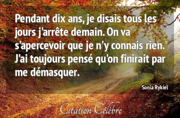 Pendant dix ans, je disais tous les jours j'arrête demain. On va s'apercevoir que je n'y connais rien. J'ai toujours pensé qu'on finirait par me démasquer.