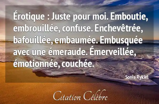 Érotique : Juste pour moi. Emboutie, embrouillée, confuse. Enchevêtrée, bafouillée, embaumée. Embusquée avec une émeraude. Émerveillée, émotionnée, couchée.