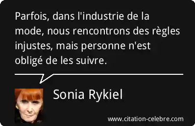 Parfois, dans l'industrie de la mode, nous rencontrons des règles injustes, mais personne n'est obligé de les suivre.
