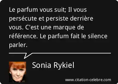 Le parfum vous suit; Il vous persécute et persiste derrière vous. C'est une marque de référence. Le parfum fait le silence parler.