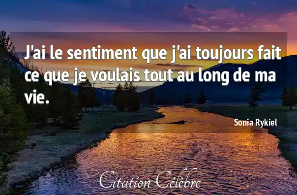 J'ai le sentiment que j'ai toujours fait ce que je voulais tout au long de ma vie.