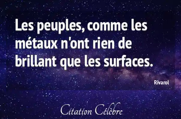 Les peuples, comme les métaux n'ont rien de brillant que les surfaces.
