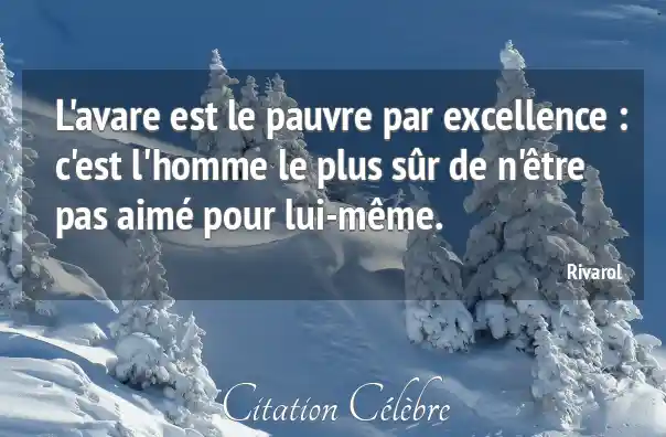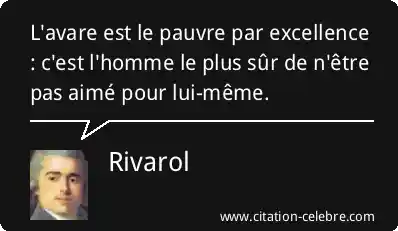L'avare est le pauvre par excellence : c'est l'homme le plus sûr de n'être pas aimé pour lui-même.
