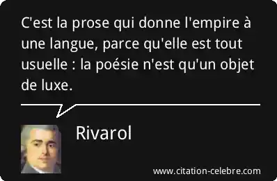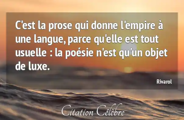 C'est la prose qui donne l'empire à une langue, parce qu'elle est tout usuelle : la poésie n'est qu'un objet de luxe.