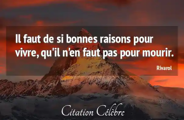 Il faut de si bonnes raisons pour vivre, qu'il n'en faut pas pour mourir.
