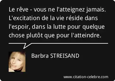 Le rêve - vous ne l'atteignez jamais. L'excitation de la vie réside dans l'espoir, dans la lutte pour quelque chose plutôt que pour l'atteindre.