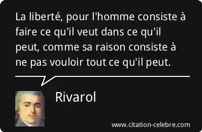 La liberté, pour l'homme consiste à faire ce qu'il veut dans ce qu'il peut, comme sa raison consiste à ne pas vouloir tout ce qu'il peut.