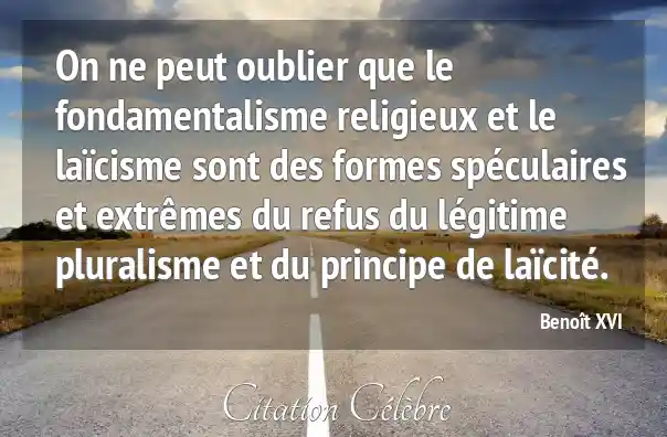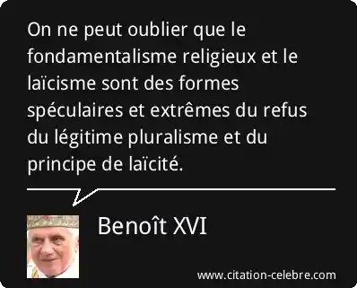 On ne peut oublier que le fondamentalisme religieux et le laïcisme sont des formes spéculaires et extrêmes du refus du légitime pluralisme et du principe de laïcité.