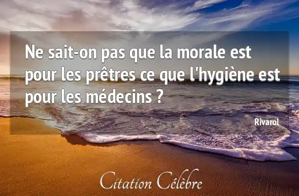 Ne sait-on pas que la morale est pour les prêtres ce que l'hygiène est pour les médecins ?