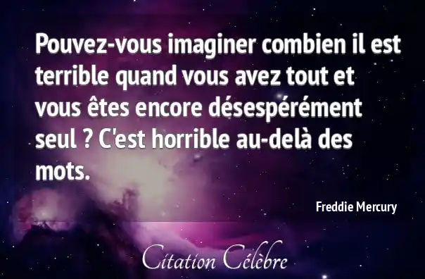 Pouvez-vous imaginer combien il est terrible quand vous avez tout et vous êtes encore désespérément seul ? C'est horrible au-delà des mots.