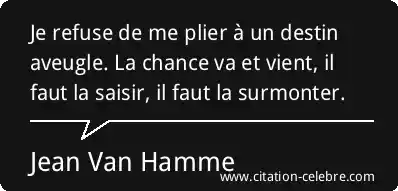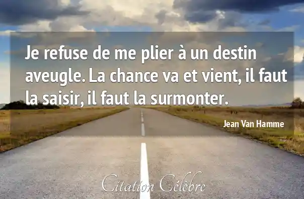 Je refuse de me plier à un destin aveugle. La chance va et vient, il faut la saisir, il faut la surmonter.