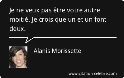 Je ne veux pas être votre autre moitié. Je crois que un et un font deux.