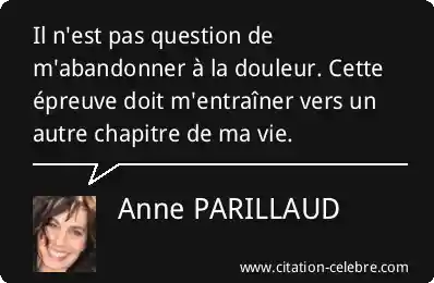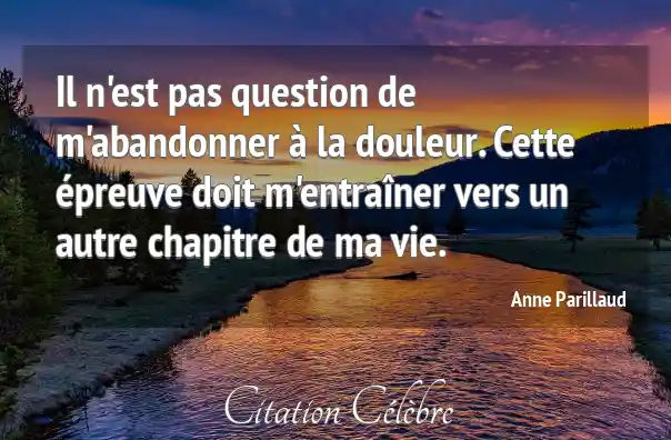 Il n'est pas question de m'abandonner à la douleur. Cette épreuve doit m'entraîner vers un autre chapitre de ma vie.