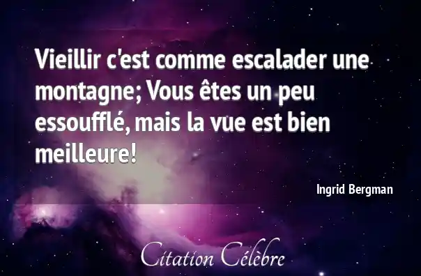 Citation Ingrid Bergman bien : Vieillir c'est comme escalader une montagne; Vous êtes un peu...