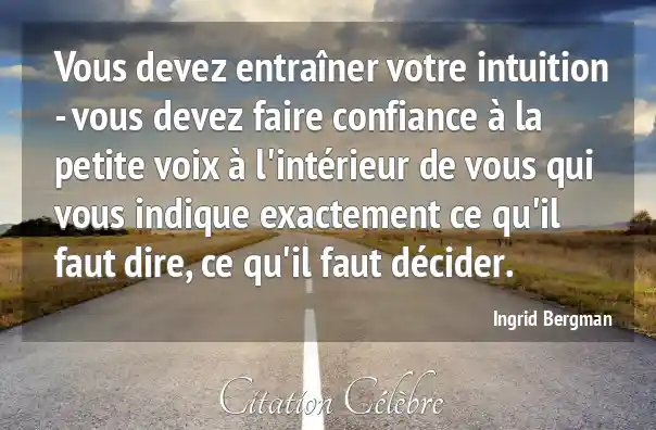 Vous devez entraîner votre intuition - vous devez faire confiance à la petite voix à l'intérieur de vous qui vous indique exactement ce qu'il faut dire, ce qu'il faut décider.