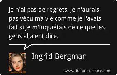 Je n'ai pas de regrets. Je n'aurais pas vécu ma vie comme je l'avais fait si je m'inquiétais de ce que les gens allaient dire.
