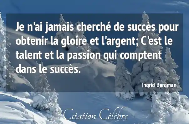 Je n'ai jamais cherché de succès pour obtenir la gloire et l'argent; C'est le talent et la passion qui comptent dans le succès.