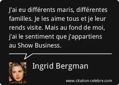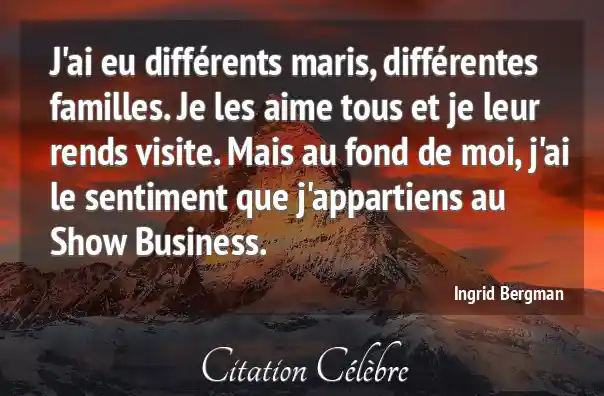 J'ai eu différents maris, différentes familles. Je les aime tous et je leur rends visite. Mais au fond de moi, j'ai le sentiment que j'appartiens au Show Business.