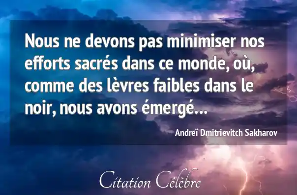 Nous ne devons pas minimiser nos efforts sacrés dans ce monde, où, comme des lèvres faibles dans le noir, nous avons émergé...