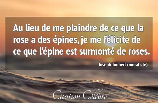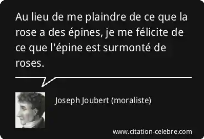 Au lieu de me plaindre de ce que la rose a des épines, je me félicite de ce que l'épine est surmonté de roses.