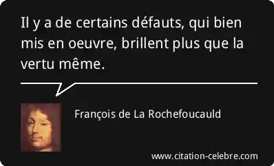 Il y a de certains défauts, qui bien mis en oeuvre, brillent plus que la vertu même.
