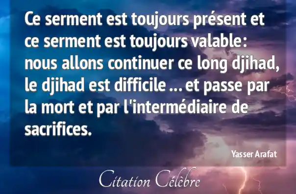 Ce serment est toujours présent et ce serment est toujours valable: nous allons continuer ce long djihad, le djihad est difficile ... et passe par la mort et par l'intermédiaire de sacrifices.