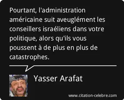Pourtant, l'administration américaine suit aveuglément les conseillers israéliens dans votre politique, alors qu'ils vous poussent à de plus en plus de catastrophes.