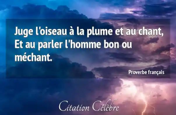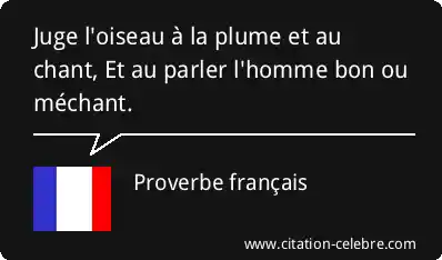 Juge l'oiseau à la plume et au chant, Et au parler l'homme bon ou méchant.