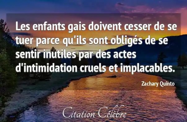 Les enfants gais doivent cesser de se tuer parce qu'ils sont obligés de se sentir inutiles par des actes d'intimidation cruels et implacables.