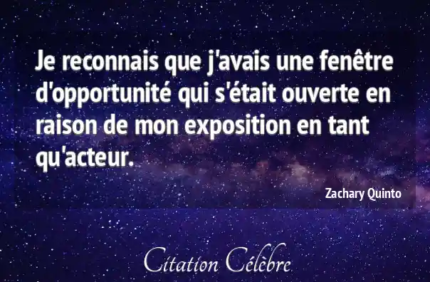 Je reconnais que j'avais une fenêtre d'opportunité qui s'était ouverte en raison de mon exposition en tant qu'acteur.