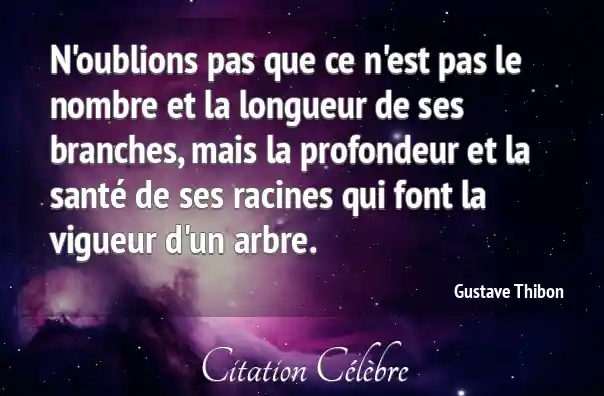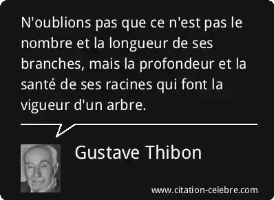 N'oublions pas que ce n'est pas le nombre et la longueur de ses branches, mais la profondeur et la santé de ses racines qui font la vigueur d'un arbre.