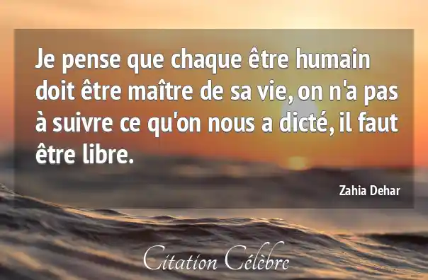 Je pense que chaque être humain doit être maître de sa vie, on n'a pas à suivre ce qu'on nous a dicté, il faut être libre.