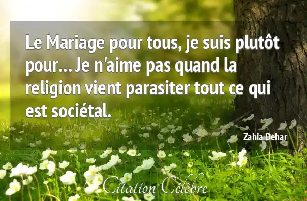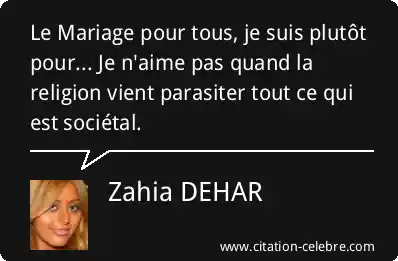 Le Mariage pour tous, je suis plutôt pour... Je n'aime pas quand la religion vient parasiter tout ce qui est sociétal.