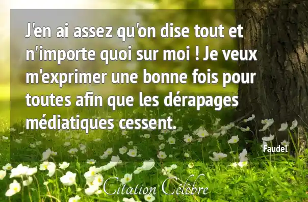 J'en ai assez qu'on dise tout et n'importe quoi sur moi ! Je veux m'exprimer une bonne fois pour toutes afin que les dérapages médiatiques cessent.