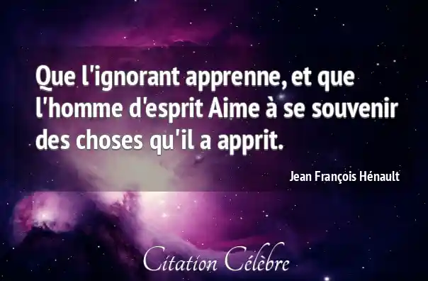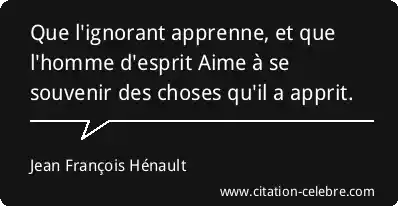 Que l'ignorant apprenne, et que l'homme d'esprit Aime à se souvenir des choses qu'il a apprit.